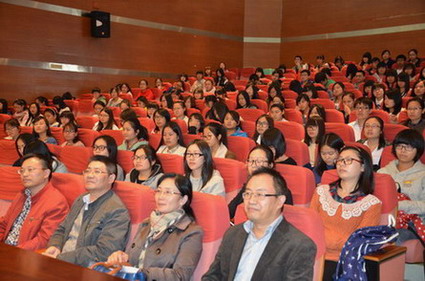 114下午,全国教育系统劳动模范、全国中小学德育工作标兵、陕西省中学语文特级教师、陕西省道德模范呼秀珍老师来校作“加强师德修养,做人民满意的教师”报告。教科院师生及校部分师范专业学生聆听了此次报告会。副校长蒋乃华主持报告会。