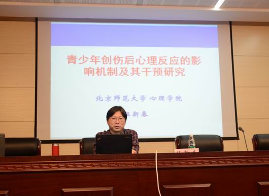 伍教授在报告中指出,人在创伤后出现情绪、认知、行为及生理上的某些应激反应是十分自然和正常的。他和他所在的团队对青少年创伤后心理反应的相关研究源于汶川地震的发生,这一灾难事件让当地青少年饱受了极大的创伤。伍教授主要从三个方面阐述其研究内容和成果:中小学生创伤后应激障碍(PTSD)和创生后成长(PTG)的发展特点与趋势、中小学生PTSD和PTG影响机制的比较研究、中小学生PTSD和PTG的追踪研究。在总结、反思、评论已有研究的基础上,伍教授就今后的研究重点和方向提出了新思路。依据中小学生创伤心理的研究结果,伍教授提出应适时、恰当地对其进行危机干预实践。