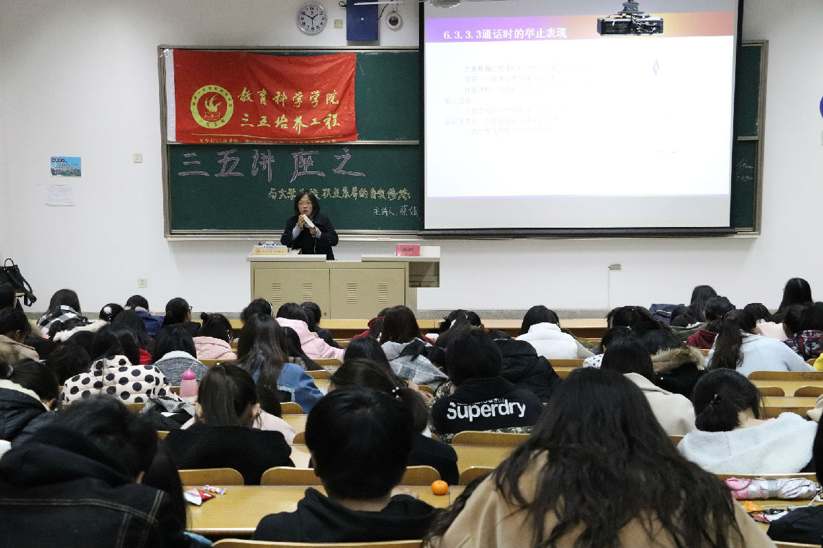 11月29日下午,蔡婧老师在4号楼205做题为“与大学生谈职业素养的自我修养”的三五讲座,本次三五讲座也是色色直播 12.5心理健康宣传月的心理讲座的第一讲,全院200余人到场参与。
