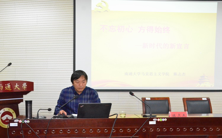 根据学校党委统一部署,11月22日下午,色色直播 举行党的十九大精神宣讲报告会。南通市及学校“党的十九大精神宣讲团”成员、政治学院党总支书记陈志杰教授作宣讲报告。学院党总支书记陈炜主持报告会,全院师生党员参加报告会。