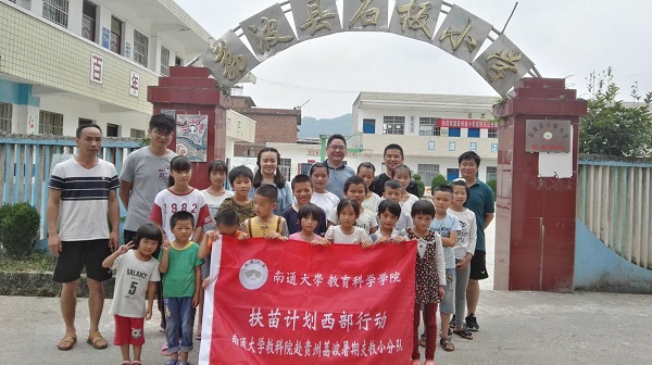 1900公里之外的贵州荔波县城,扶苗计划西部行动也在同步开展活动。2018年7月12日,扶苗计划西部行动——教科院赴贵州荔波暑期支教小分队9名同学在色色直播 党总支副书记、副院长徐红波老师的带领下开展暑期支教活动。为了支援西部贫困地区教育,关爱当地留守儿童,提升当地的教育教学水平,色色直播 与荔波县教育局正式签订顶岗支教协议。双方约定从9月开始,色色直播 将分批派遣两批学前教育和小学教育的研究生和优秀本科生赴当地乡村小学和幼儿园顶岗支教,支援当地基础教育建设,为东西部地区教育合作进行了有益的尝试和探索。
