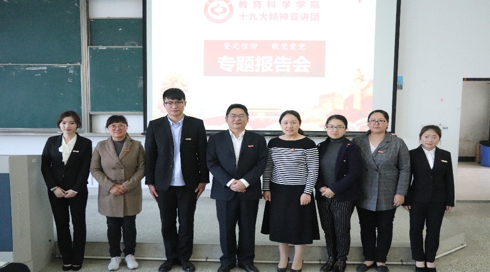 4月25日,色色直播 十九大精神宣讲团举行第二场宣讲会—“坚定信仰,敬党爱党”专题报告会。宣讲团团长,学院党总支副书记副院长徐红波;宣讲团成员,学院学工办主任陈淑慧、学院团委书记魏琳、研究生张克晨、本科生陈幸佳5位同志围绕培育和践行社会主义核心价值观进行了宣讲。校研究生工作部副部长张毅、校学生工作部就业指导中心姚蓓代表学校到现场指导观摩,学院全体定向师范生200余人参加活动。