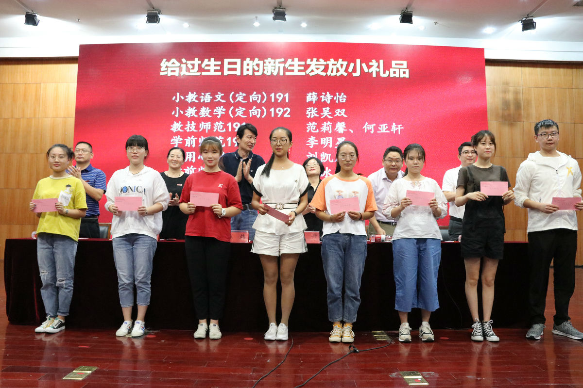典礼开始前,全体师生观看了学院为2019级新同学精心制作的暖场视频。新生大数据分析、学院相关介绍、新生及新生家长采访、学院领导和老师的温馨祝福,营造了良好的典礼氛围。入学典礼上,学院还特意为开学一周内过生日的十名同学送上了精心准备的生日礼物,让新生们感受到来自教科院大家庭的温暖。典礼上,全体新同学为自己佩戴上色色直播