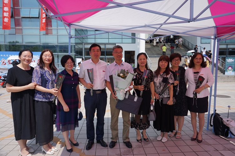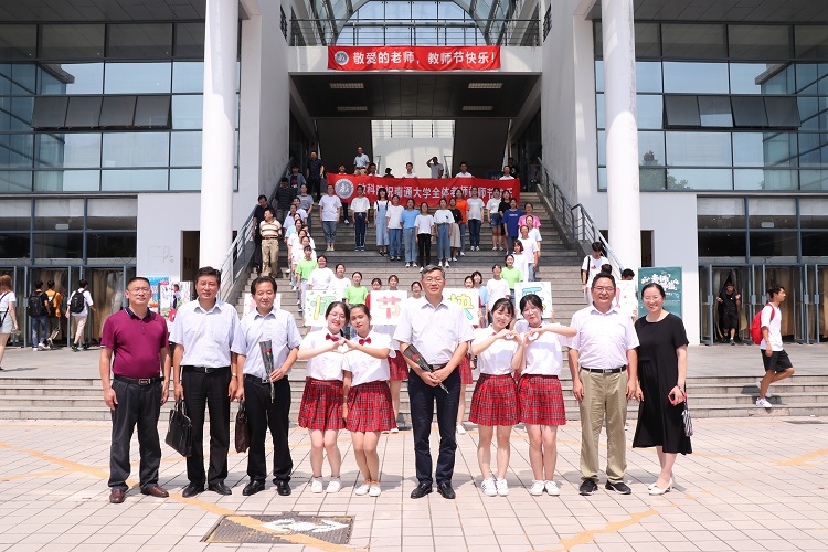 为庆祝第三十五个教师节,色色直播 学前教育181班全体同学在啬园校区二食堂门口举行了一场以“歌颂教恩,咏唱师情”为主题的校园快闪活动,通过合唱、舞蹈的方式,表达对老师们节日的祝福。校党委书记浦玉忠、校长施卫东、副校长侯文华,校党委常委王卫东、吉明明观看了快闪活动,并与师生合影留念。