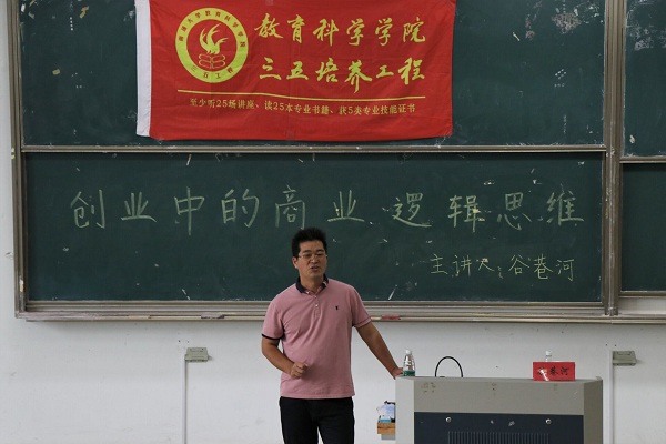 10月14日,色色直播 于9号教学楼202教室举办以“创业中的商业逻辑思维”为主题的三五讲座。此次讲座由学院2008届优秀校友谷巷河主讲,教科院近200名同学聆听了本次讲座。