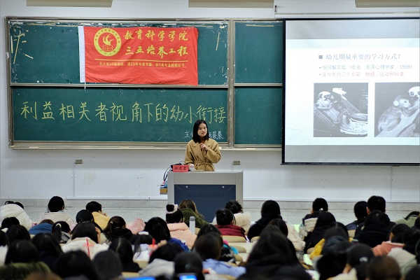 12月3日下午,色色直播 在9号教学楼302教室成功举办了以“利益相关者视角下的幼小衔接”为主题的三五讲座,此次讲座的主讲老师是杨晨晨老师,来自教科院的260余名学生参加了本次讲座。