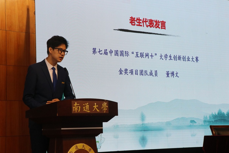 在大学期间如何能够成为最好的自己?典礼现场,学院邀请在第七届中国国际“互联网+”大学生创新创业大赛获得金奖的“派斯盾‘鞘翅甲’仿生纳米自洁涂层”研究团队中色色直播 的两名成员元淑芬、董博文登台亮相。元淑芬同学学习出众,堪称“全能学霸”;董博文同学能力出众,堪称“演讲达人”,两位同学为新生群体带来榜样的力量。董博文作为老生代表分享了他参加“互联网+”大学生创新创业大赛的艰辛的备赛经历和人生感悟,他认为,努力是最好的答案,拼搏的汗水总是在熠熠生辉,人生的路途是漫长的试炼与成长。