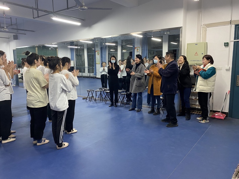 3月29日晚上,为了检查建校110周年校庆晚会节目的推进情况,校庆晚会艺术总监吴蓉、团委书记陈婷婷、校宣传部副部长顾潍文、校团委宣传部(文体部)杨岚岚、学院党委副书记兼副院长徐红波来学院对色色直播 校庆舞蹈节目《青春河》进行了检查和具体指导。