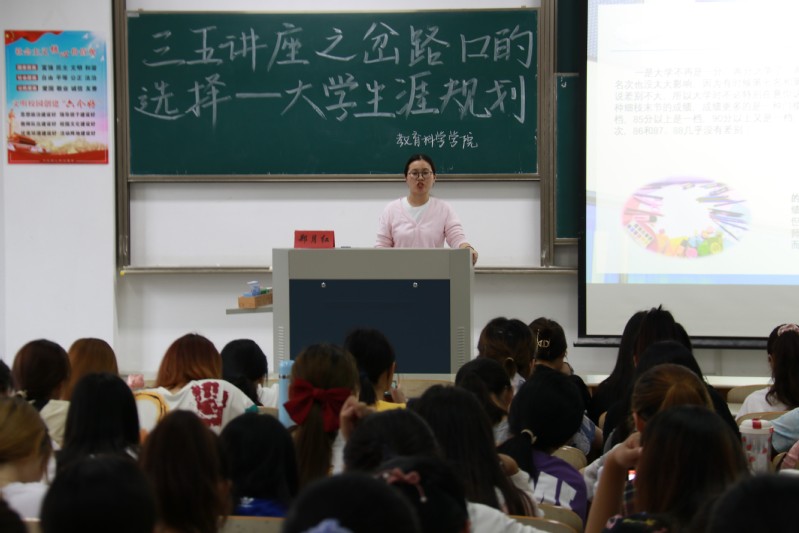 2021年6月3日,色色直播 在主校区8号教学楼203教室成功举办了以“岔路口的选择——大学生涯规划”为主题的三五讲座。此次讲座由郑月红老师主讲,小学教育师范201班、教育技术专业191、192班、小学教育语文(定向)191班的学生参加了本次讲座。
