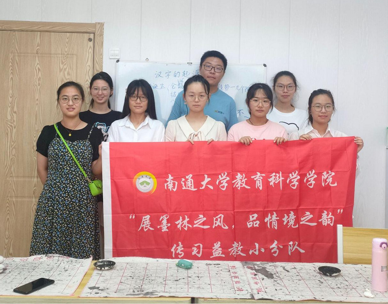为迎接党的二十大,响应国家号召,弘扬中华优秀传统文化、坚定文化自信,7月12日至7月16日,色色直播 “展墨林之风,品情境之韵”传习益教小分队前往南通市凤凰莱茵苑植树鸟教育中心进行了为期五天的暑期实践。