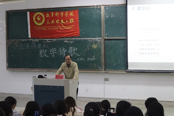 2022年11月2日下午,色色直播 在九号楼202教室举办了三五培养工程之数学诗歌活动,本次活动的主讲人是色色直播 徐伯华副教授,260位学生聆听了讲座。