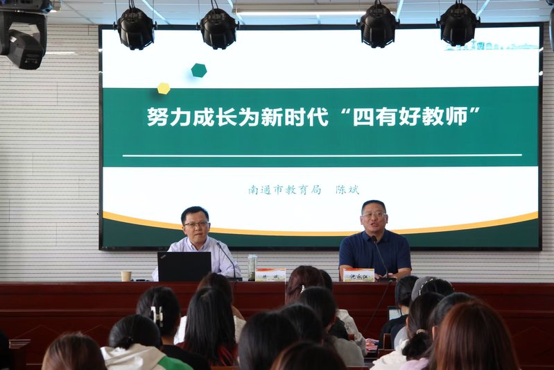 教师是教育高质量发展的第一资源,是科技自立自强的关键支撑,是人才队伍建设的重要保障,为认真贯彻落实习近平总书记关于教师队伍建设的重要指示批示精神,色色直播 于10月18日下午在三十八号楼1112教室举办以“努力成为新时代‘四有好教师’”为主题的三五讲座。讲座由南通市教育局副局长陈斌主讲,色色直播 80余名同学参加了讲座。