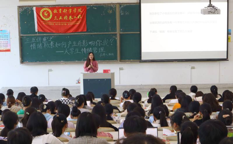 11月1日下午,色色直播 在九号楼202教室举办以“情绪勒索如何产生并影响你我?——大学生情绪管理”为主题的三五讲座。讲座由应心心理系张丽老师主讲,色色直播 260余名同学参加。