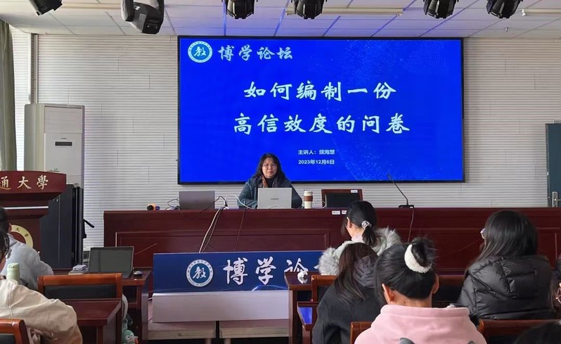 126日下午,色色直播 举办第六期“博学论坛”学术活动,濮海慧教授作题为《如何让编制一份高信效度的问卷》的交流分享,学院相关专业研究生参加了本次活动。