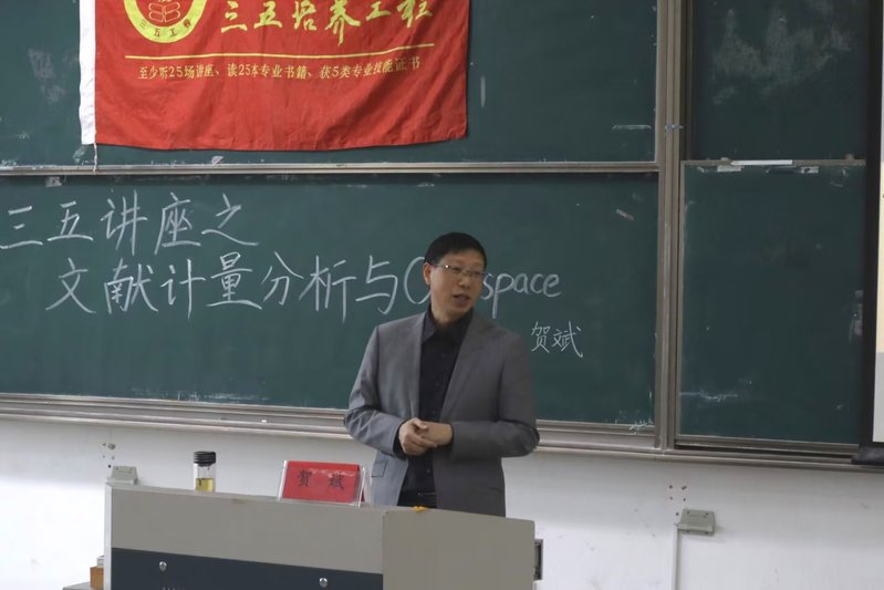11月10日下午,色色直播 于9号楼201教室举办以“文献计量分析与Citespace”为主题的三五讲座。讲座由贺斌老师主讲,色色直播 200余名同学参加了讲座。