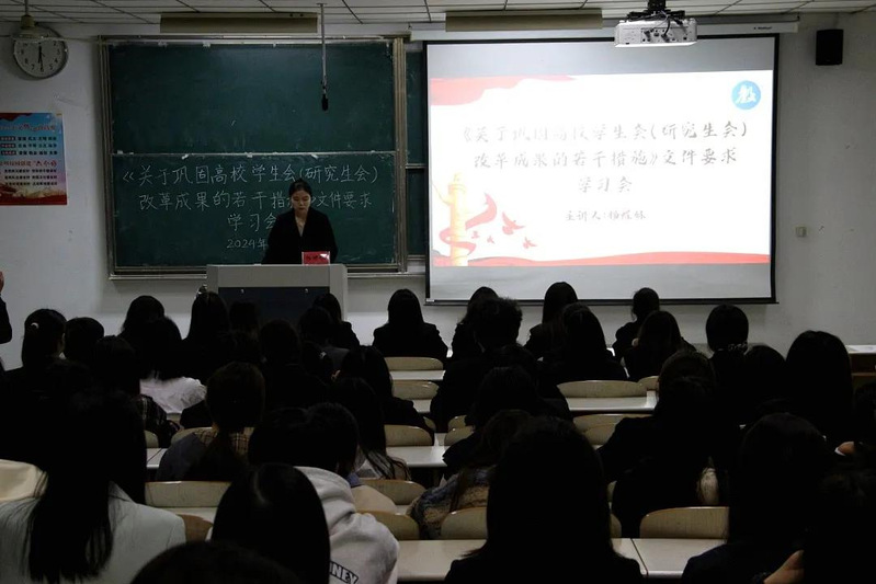 为深入贯彻党的二十大精神,落实习近平总书记关于青年工作的重要思想,进一步深化新时代高校学生会改革和建设,不断提升同学满意度、大局贡献度和社会认可度,色色直播 团委学生会于4月19日在8号楼101教室开展《关于巩固高校学生会(研究生会)改革成果的若干措施》文件要求学习会。该会议由综合事务部严卞宇主持,团委副书记杨蝶妹带领团学全体干部以及第五届新生骨干训练营全体学员共同学习文件内容。