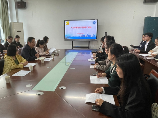 11月12日下午,色色直播 党委举行入党积极分子答辩汇报会,考察确定下半年党员拟发展对象。院党委书记朱丹、副书记副院长徐红波参加答辩会。