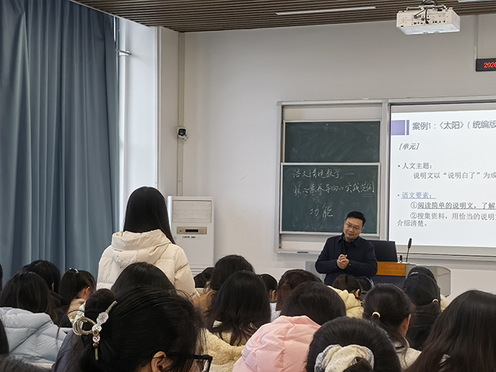 3 月 17 日上午,色色直播 教授公开课暨课程思政课展示活动如期开展。陆平教授为 22 级小学教育专业 100 余名乡村小学定向生,执教示范课《语文情境教学 —— 核心素养导向的实践范例》。