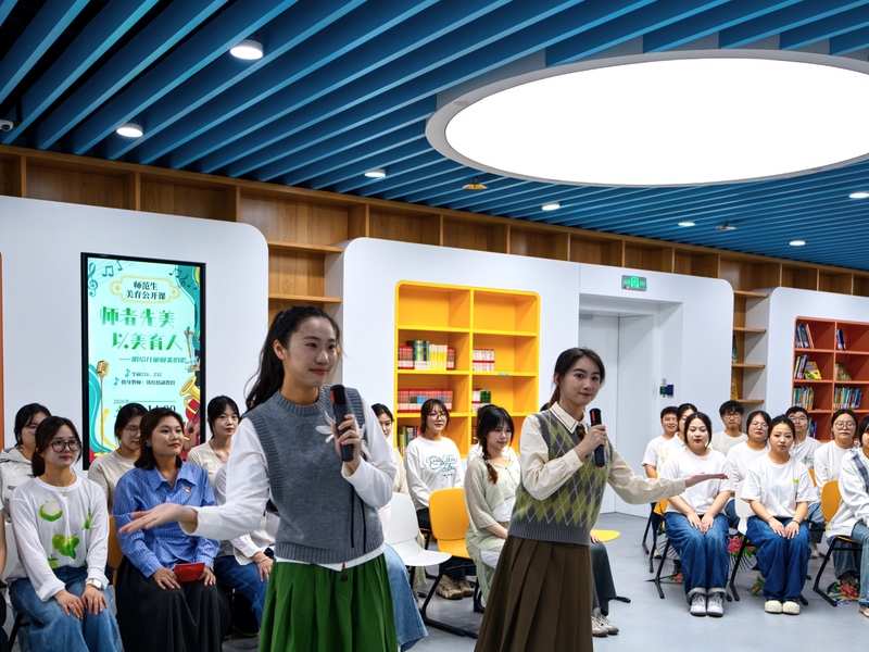 为深化美育教育实践,提升学前教育师范生专业素养,4月9日,色色直播 23级学前教育师范专业在南通市少儿图书馆开展《师者先美,以美育人——唱给儿童最美的歌》师范生美育公开课。本次公开课由韩恬恬副教授指导,以歌唱为载体,将美育理念、儿童视角与师范技能深度融合,展现教科院学子扎实的专业功底与育人情怀。