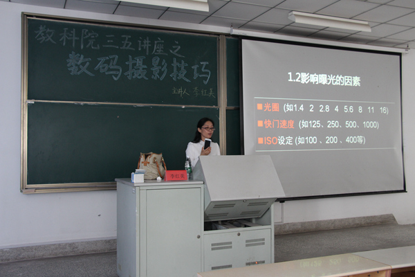 主校区8号楼209教室举办了“数码摄影技巧”专题三五讲座。本次讲座的主讲人是教育技术系系主任李红美副教授。