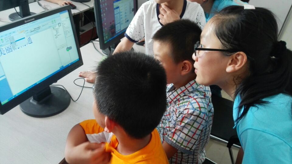 活动伊始,王月同学介绍了几种电子杂志的制作软件,以便小朋友们熟悉上机内容。随后,以小朋友们的家乡南通、湖北、河南为例简要介绍了电子杂志制作素材的准备过程,引导小朋友们从家乡美食、名胜古迹、名人轶事等角度搜集素材。在上机操作之前,教员们根据家乡所在地将小朋友们分为南通组、湖北组等共六组。每组配对一名教员辅导他们上机进行实际操作。操作期间,南通二组的姜杰小朋友对电子杂志软件表现出极强的好奇心,向教员表示“回家也要下载一个iebook(制作电子杂志的软件),自己学习电子相册的制作。”两个小时后,各小组在教员的指导下都相继完成自己的作品。