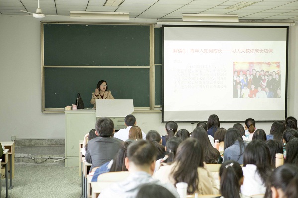 党的十八大以来,习近平总书记亲切关怀青年发展,高度重视青年工作,多次出席青年活动,与青年座谈交流,给青年回信演讲,提出了一系列关于青年工作的重要论述。蔡老师在本次讲座中主要分析了六个解读,解读一:青年人如何成长——习近平总书记教你成长功课;解读二:青年人如何成才——习近平总书记为你指点迷津;解读三:树立社会主义核心价值观——习近平总书记为青年“扣扣子”;解读四:新时期如何成为优秀的团干部;解读五:中国传统文化哪些思想值得青年学习;解读六:习近平总书记教会青年如何讲好“中国故事”。