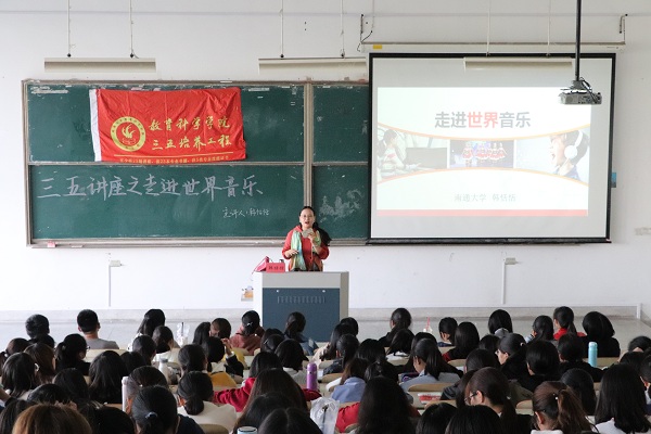 10月31日13:30,色色直播 于9号楼201室顺利举行了以“走进世界音乐”为主题的三五讲座。本次讲座由韩恬恬老师主讲,教科院280余名学生到场参与了本次讲座。