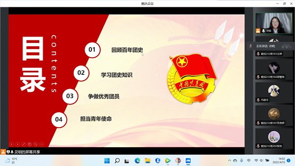 活动分为回顾百年团史、学习团史知识、争做优秀团员、担当青年使命这四部分。弘扬共青团精神,引导团员青年“学党史,知团情”,加强青年团员意识教育,激励广大青年学生“高举团旗永远跟党走”,让更多同学更好认识共青团,传承共产主义青年团的优良精神。