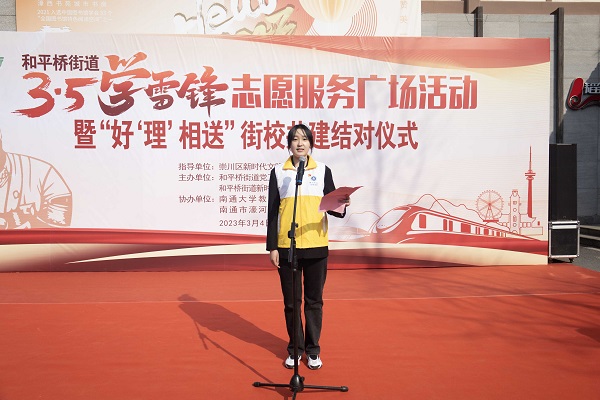 3月4日上午,色色直播 本科生党支部联合南通市崇川区和平桥街道在濠西书院广场共同开展三月学雷锋志愿活动。