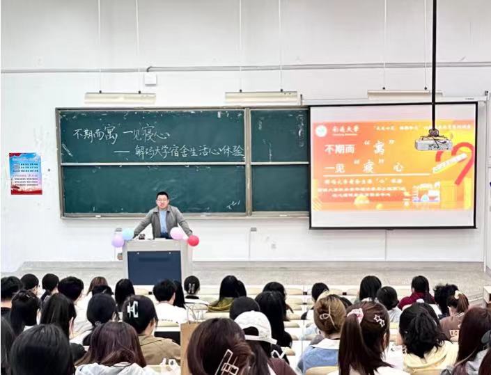 夏光祥老师以《不期而“寓”一见“寝”心——解码大学宿舍生活“心”体验”》为题,围绕为什么会产生宿舍矛盾、怎样解决宿舍矛盾,结合详细案例剖析大学宿舍生活可能会产生的人际关系问题,并指出三点应对方法:一要明确个人生活习惯和地方习俗差异;二要分析宿舍矛盾产生的具体原因;三要采用有效交流、换位思考、互相体谅等技巧解决宿舍矛盾。其幽默风趣的语言让心理健康知识变得通俗易懂,学生受益匪浅。