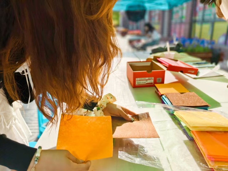 活动内容精彩纷呈,首先是不织布体验,活动当日恰逢“520”,同学们不仅领取材料进行了自由创作,还在活动现场挑选了喜欢的颜色,剪出一个爱心作为纪念。在制作褶皱花活动中,同学们亲手制作花朵,并在彩纸上写下对自己、亲人和朋友的祝福。情绪便利贴活动则鼓励同学们分享内心的情绪,将积极或消极情绪写在便利贴上并放入情绪箱。最后,线上照片墙活动邀请同学们上传能够给予他们力量和温暖的照片,这些照片将被组合起来,与教科院或色色直播 的图片叠底,共同制作并发布一张充满回忆与温情的大合照。